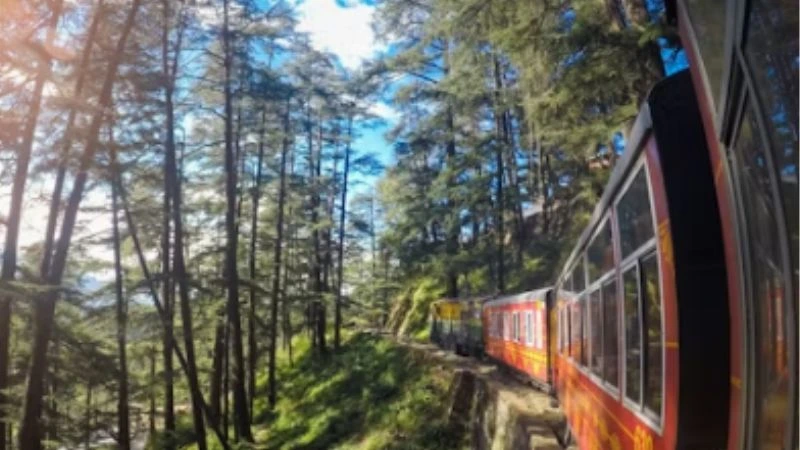 The Kalka–Shimla toy train offers a scenic journey through tunnels and hills.