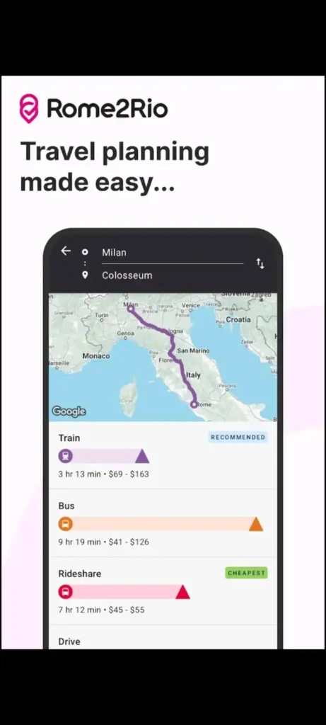 Complex routes with trains, buses, ferries, and flights require planning. Most apps show only one type of transport at a time.
